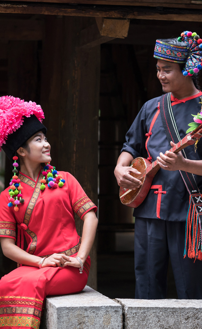 云南的布依族人口近5.5萬人,主要聚居于曲靖、文山、紅河幾個(gè)州、市的10余個(gè)縣境內(nèi),其族源歸為古代“百越”,曾有過“謝蠻”、“仲家”等稱代,是百越族系中駱越人的一支。農(nóng)耕民族,以農(nóng)歷紀(jì)年,物產(chǎn)豐富,自然條件較好;有語言,通行漢文,文學(xué)興盛,歌舞升平,民間信奉“萬物有靈、多神主宰”的原始宗教,代表節(jié)慶為祭社神節(jié)(六月初六)。布依族寨子傍水而建,兩幢民居忠于民間的構(gòu)建方式,實(shí)現(xiàn)了邛籠系與板屋系建筑手法...